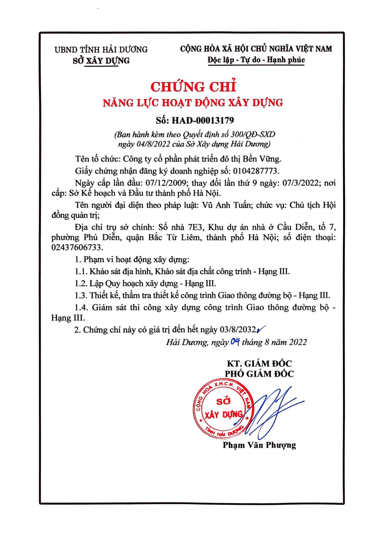 CHỨNG CHỈ NĂNG LỰC HOẠT ĐỘNG XÂY DỰNG